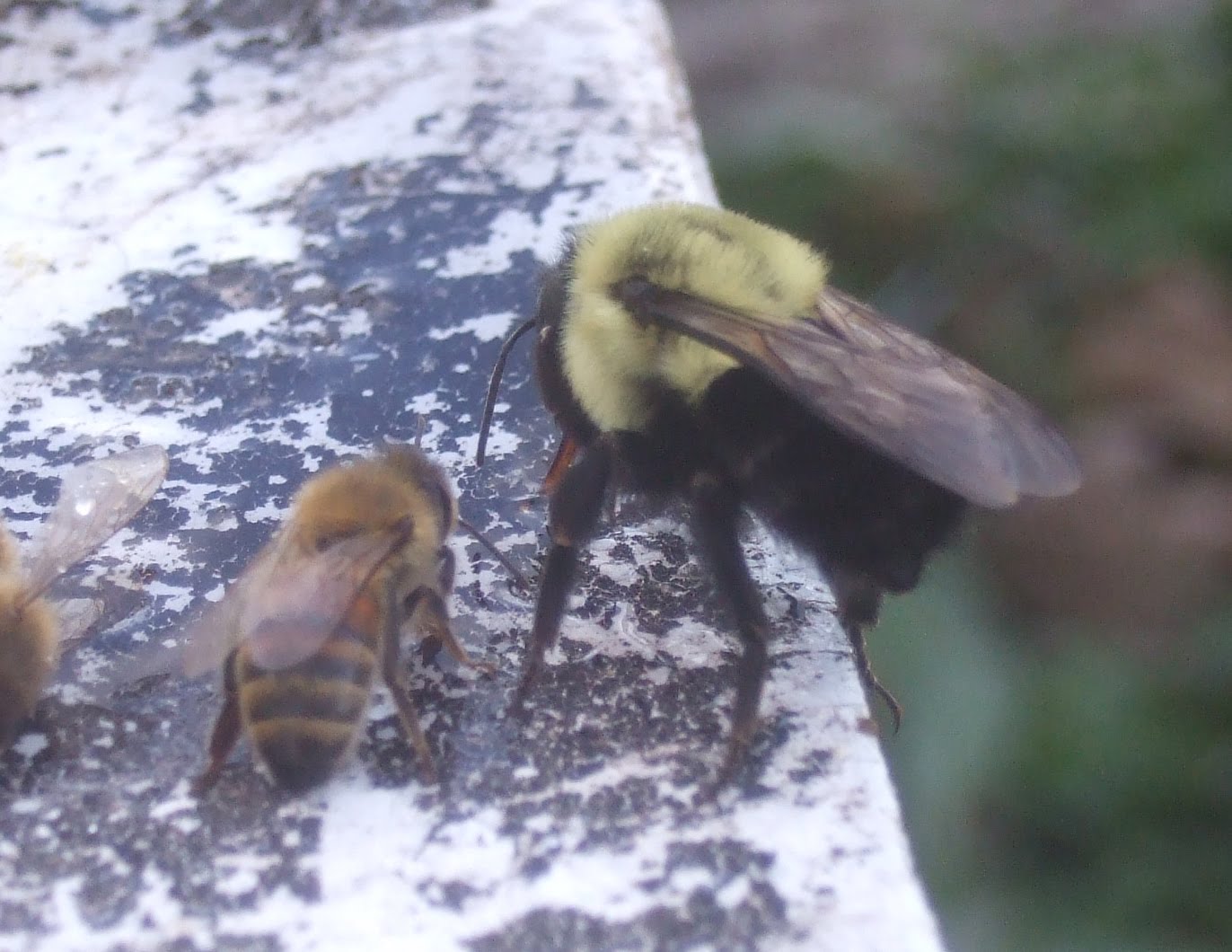 [Pictured at left is a honeybee and a bumble bee on the right]